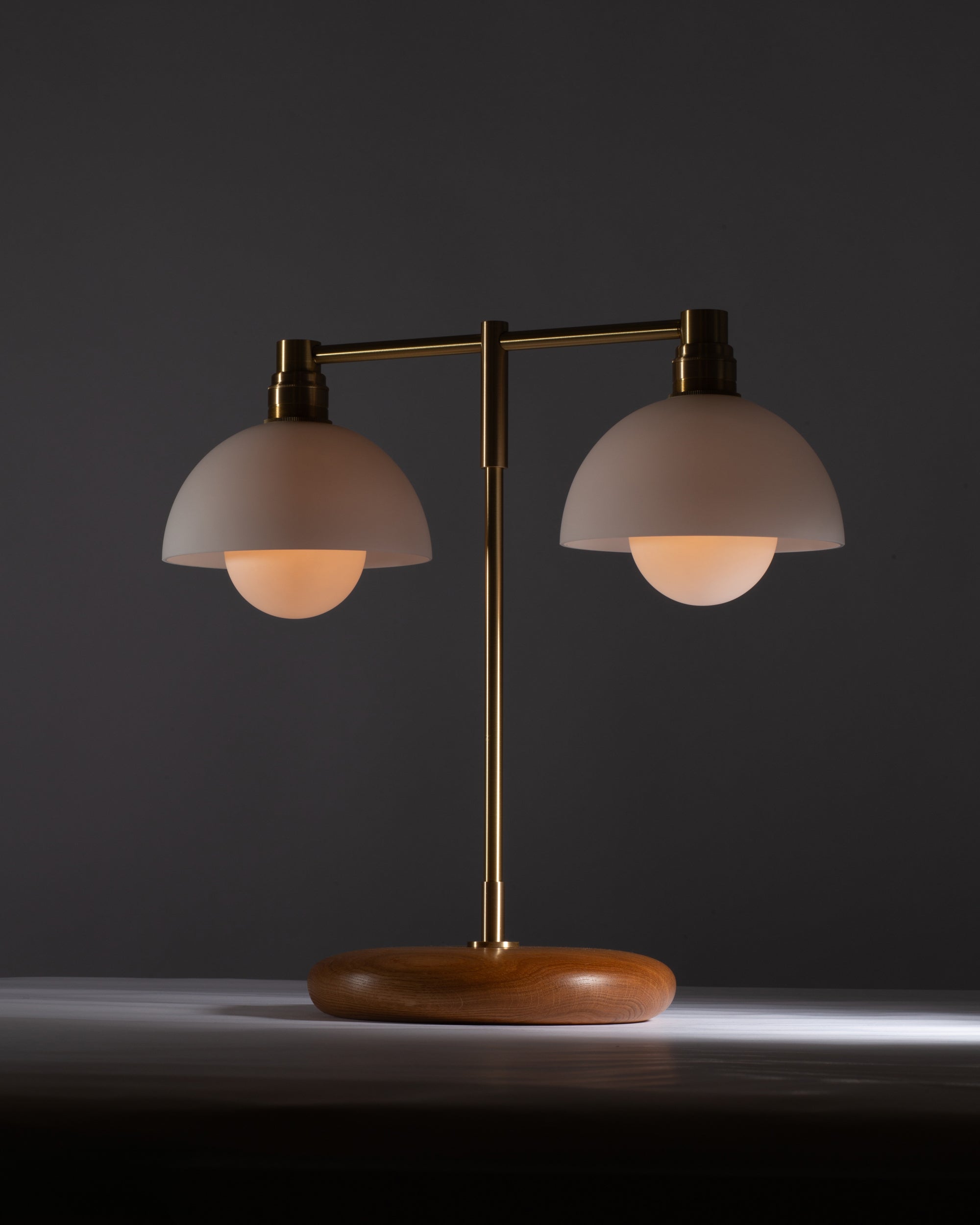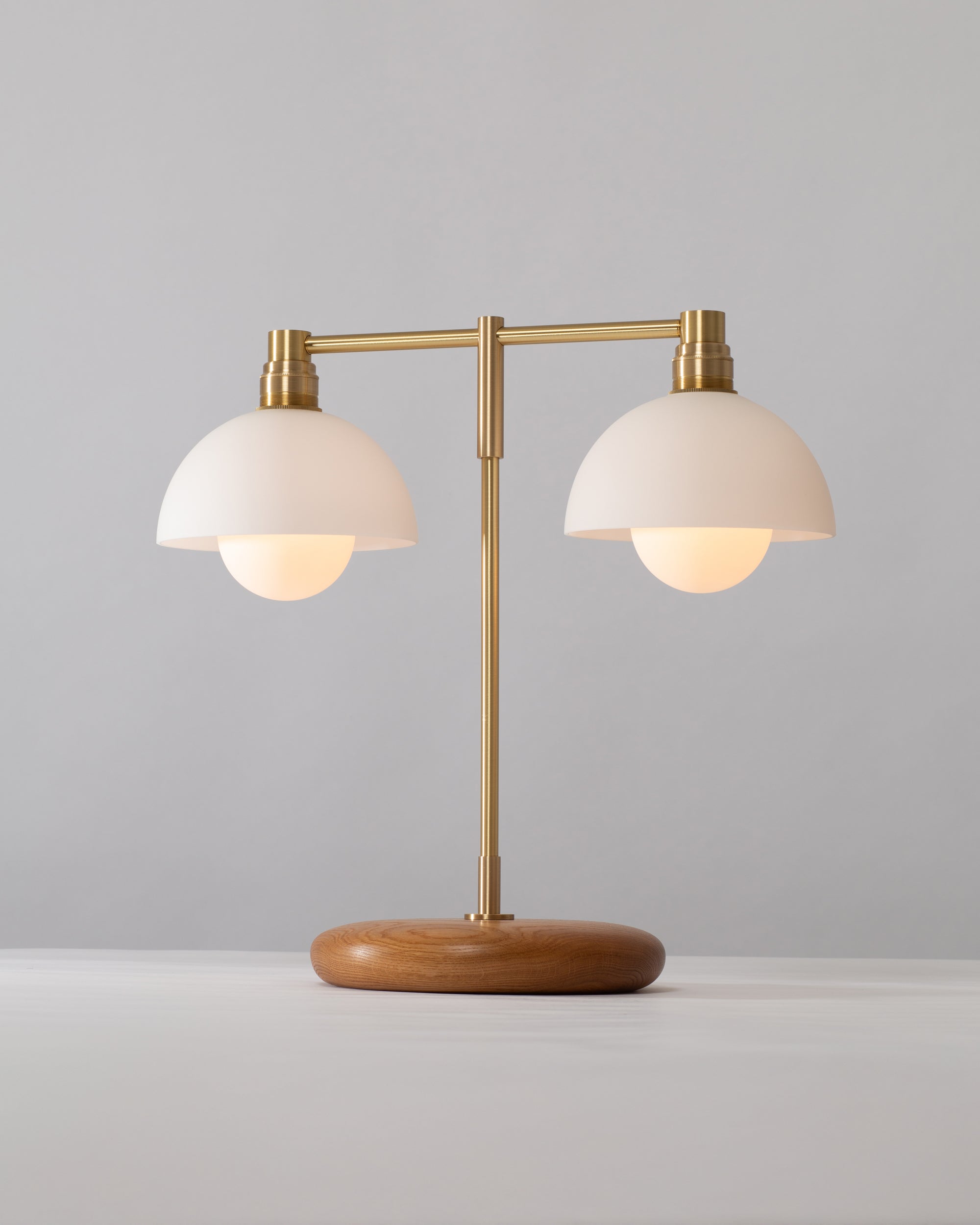 Double Matte White Glass Dome Oak Table Lamp